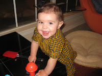 She donned her turkey bib and gobbled down some of the tastiest goodies her sweet little tastebuds have ever had - turkey, tomatoes, squash casserole, green beans, cornbread stuffing. She was in HEAVEN!